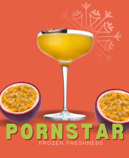 Maak kennis met de ultieme party cocktail in een frozen jasje: de Frozen Pornstar Martini! Deze onweerstaanbare mix van passievrucht, vanille en een ijzige touch zorgt voor een luxe, tropische beleving bij elke slok.